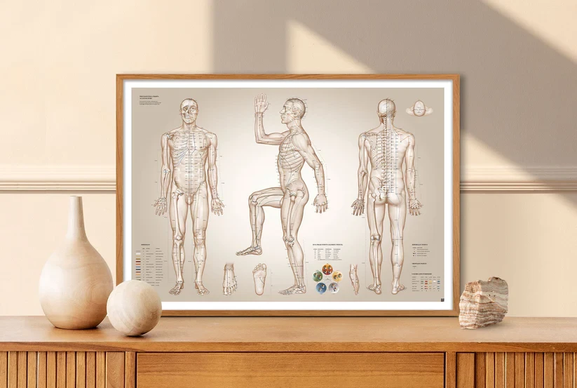 Vea también la versión clínica con 3 pósteres de 61 x 91 cm, que es grande e impresionante: https://www.swehealth.se/anatomy-c-128/anatomyplanscher-c-129/affischer-for-behandling-c-258/akupunktur-plansch-the-essential-charts-af-acupuncture-p-3054