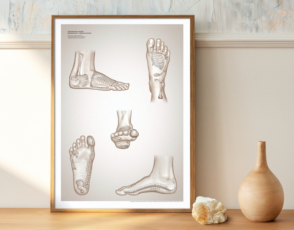 Este póster, "Sistema Esquelético", es el primero de varios sobre reflexología.