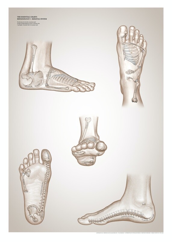 Este póster ha sido posible gracias al estudio de los músculos de los pies durante 25 años. Las zonas musculares están, por naturaleza, conectadas a las piernas y, por lo tanto, hacen visible la posición de las zonas en ellas.
