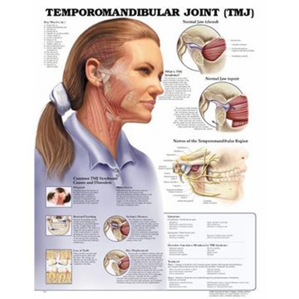 El póster define e ilustra el trastorno de la articulación temporomandibular (ATM).
