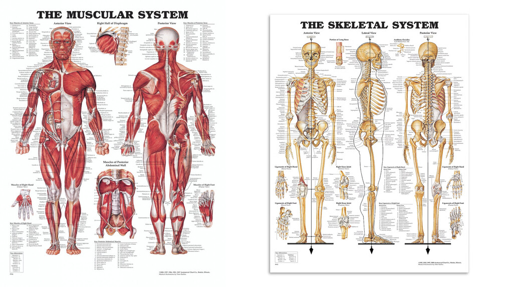 Precio por paquete: dúo de nuestros éxitos de ventas Músculos (Sistema muscular) y Esqueleto (Sistema esquelético). Este póster es reconocido por las precisas y extensas ilustraciones realizadas por Peter Bachin para Anatomical Chart Company en EE. UU.