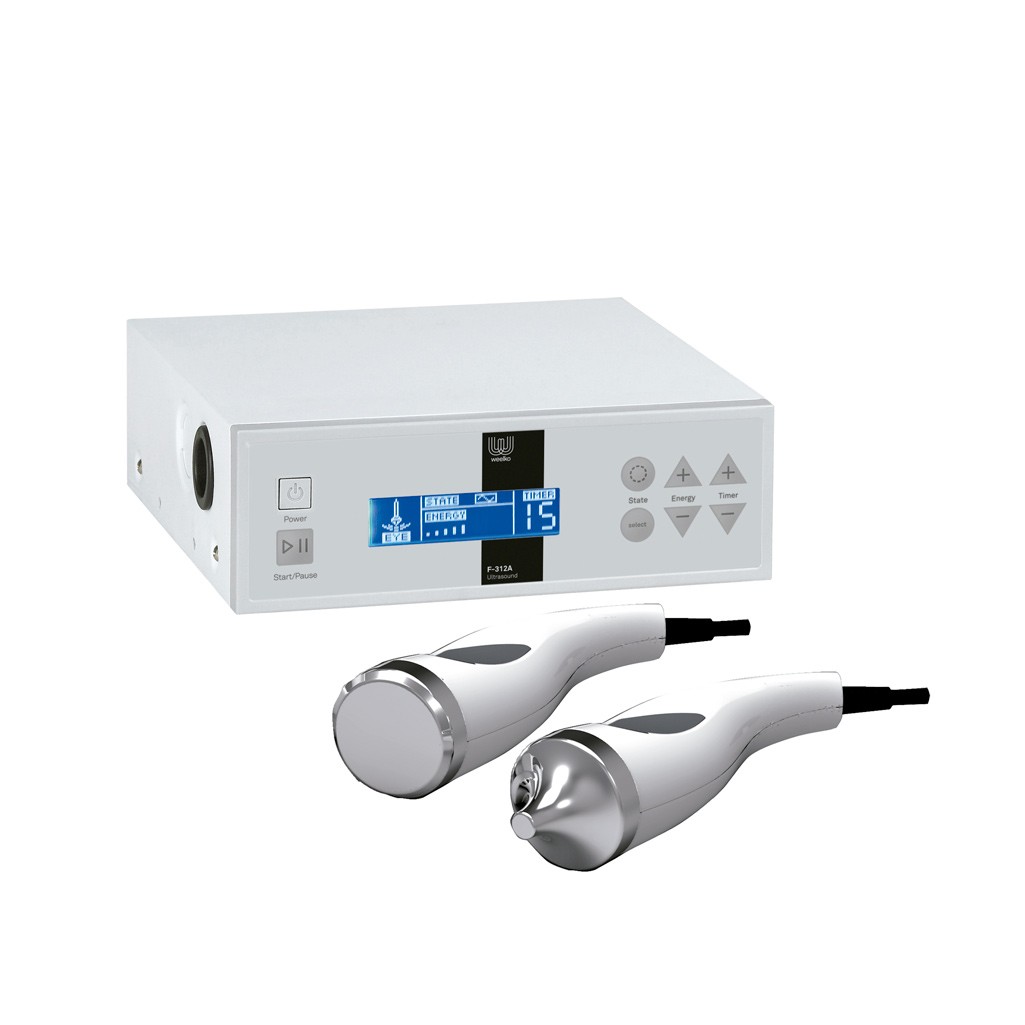 Equipo de ultrasonido B con sonda facial y orbicular. Se pueden seleccionar diferentes ondas según el tratamiento a realizar.