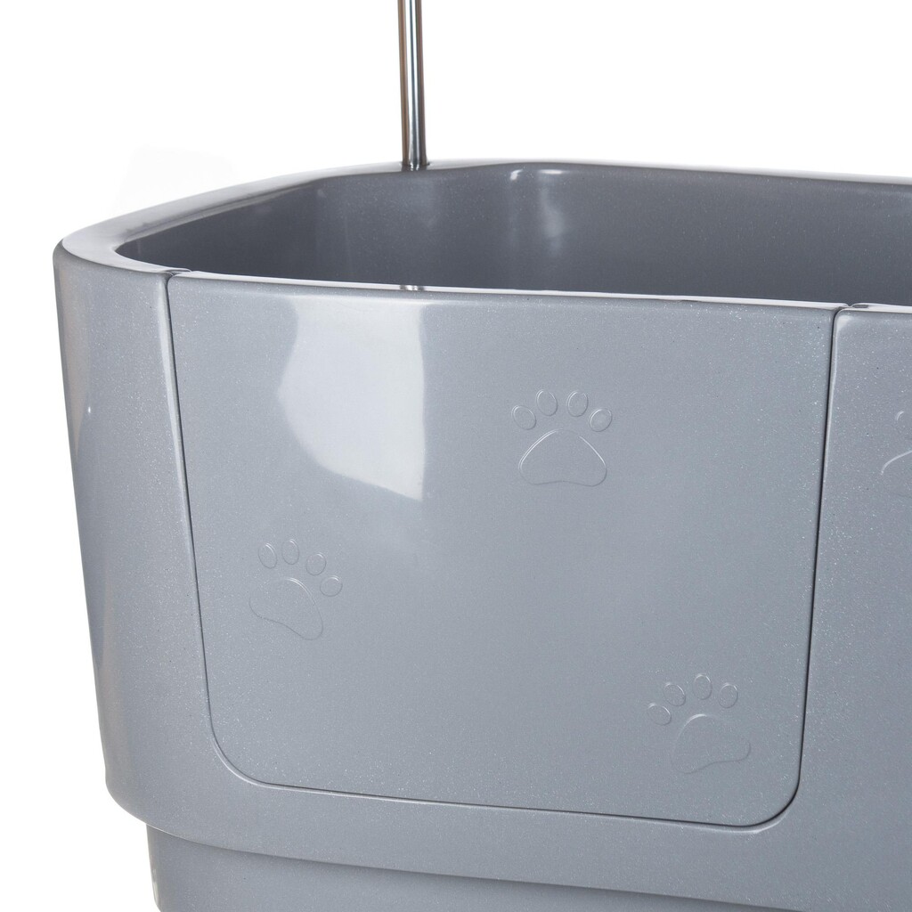 Esta bañera eléctrica para perros con elevador es perfecta para mascotas pequeñas y grandes, y simplifica el baño, el aseo y el cuidado. Está equipada con un estante de plástico extraíble que facilita el manejo incluso de animales pequeños, así como una puerta lateral para una entrada cómoda.