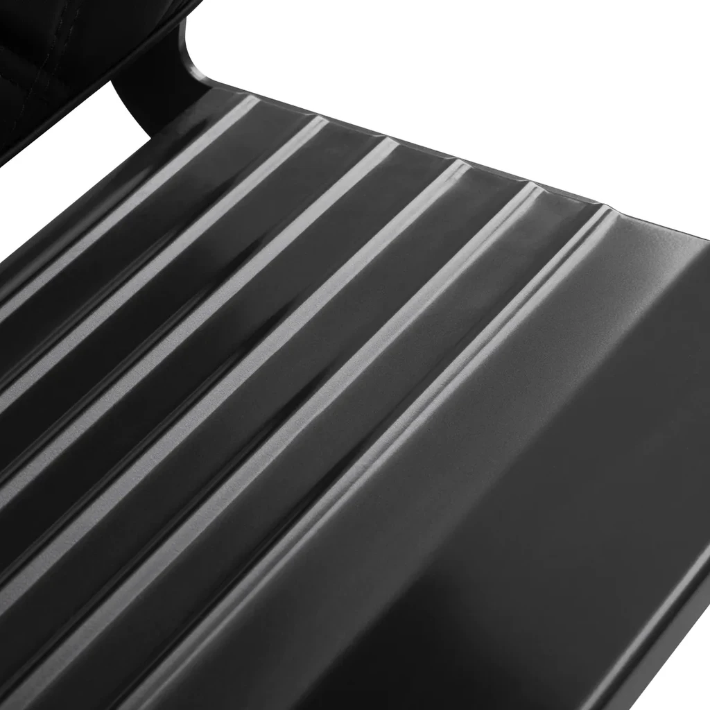 - Los reposabrazos tapizados, colocados a la altura óptima, garantizan una posición correcta de los hombros, reduciendo la tensión en el cuello y los hombros.